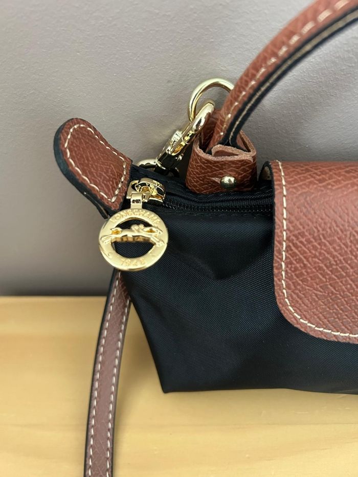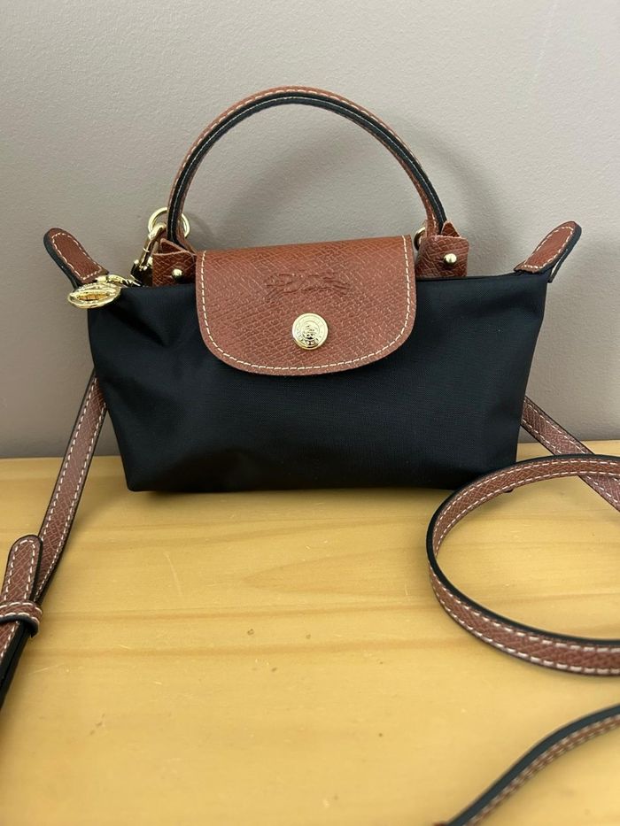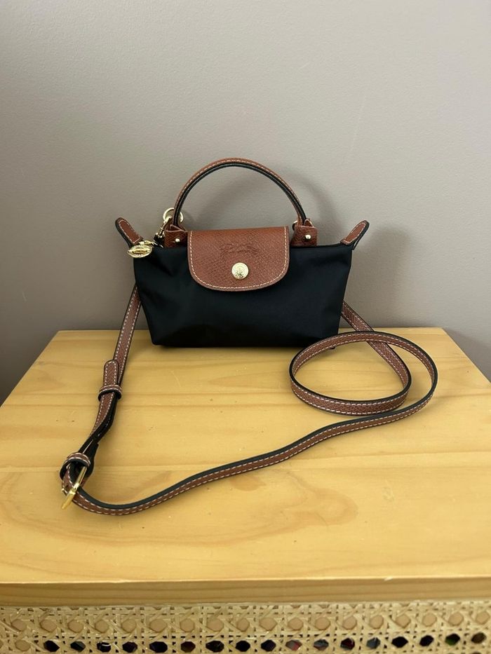 Sac à main Longchamp Mini Le pliage Dans sa pochette d'origine avec bandoulière et ses accessoires Couleur noir et marron Dimension 20cm de large 13cm de haut Neuf jamais portée Envoi rapide 😊