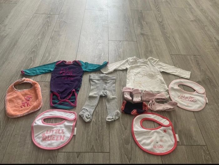 Vêtements qu'on m'a offert mais j'attends un garçon y a de 3 à 6 mois et une barboteuse en 1 ans