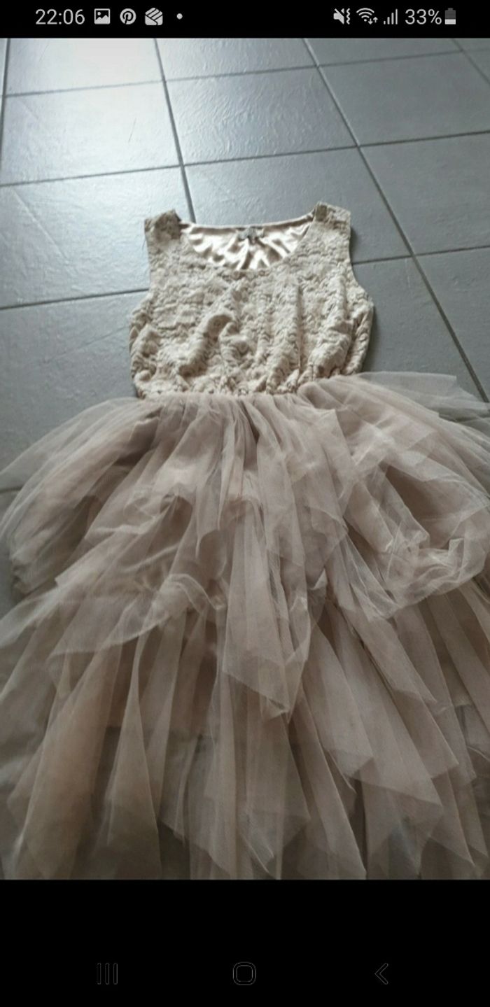 Jolie robe jours de fêtes tulle et velours beige de marque molly bracken Portée 2/3 fois Taille S/M