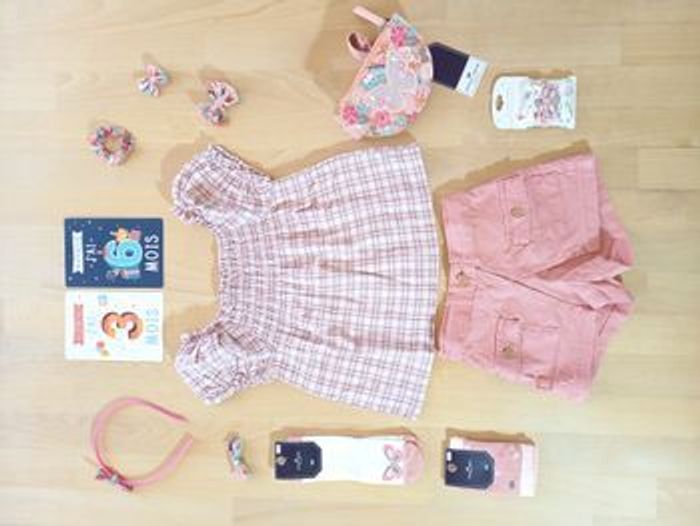 Ensemble 11 pièces de la marque Sergent Major + accessoires, taille 2 ans, 92 cm (désormais appelé 36 mois chez Sergent Major) Vêtements issus du thème printemps/été: Mon voisin perroquet 🦜 Beaucoup d'autres photos sur demande! Autres articles du thème en allant sur ce lien: #cmonvoisinperroquet - une pochette de 3 élastiques, sur blister, jamais portés 🏷 - un sac banane rose motif papillon, étiqueté 🏷 - une paire de chaussettes pointure 21/22 écrue pointe rose motif papillon, étiquetée 🏷 - une paire de chaussettes pointure 23/24 rose avec papillons et fleurs, étiquetée 🏷 - un t-shirt écru / blanc à manches courtes motif perroquet, étiqueté 🏷 - un chemisier à carreau rose, en très bon état - un t-shirt manches courtes rose motif perroquet, en très bon état - un chemisier écru fleuri, magnifique col dentelle de coton, en très bon état - une robe rose fleurie, en très bon état - une robe blanche fleurie à volants, en très bon état - un short rose avec poches, en très bon état + accessoires: - 1 serre tête complet + 1 nœud croco retombées + 1 nœud sur élastique + 1 mini nœud croco + 1 petit chouchou avec retombées: tissu blanc - 1 serre-tête fin + 1 nœud sur pince croco + 1 mini nœud croco + 1 petit chouchou: tissu rose J'ai beaucoup d'articles en parfait état, allez y faire un tour! Suivez le lien 😉 ✨ Je commence les publications hiver en 3 ans, et il y en aura beaucoup! N'hésitez pas à vous abonner à mon profil pour suivre mes nouveautés. Beaucoup de Sergent Major à venir! 🎀​​ Articles 100% fille dans mon dressing, de la taille 24 à 36 mois, des articles de puériculture, et des jouets de la naissance à 6-7 ans. ✅​ Possibilité de faire des lots. Livraison rapide et très soignée.