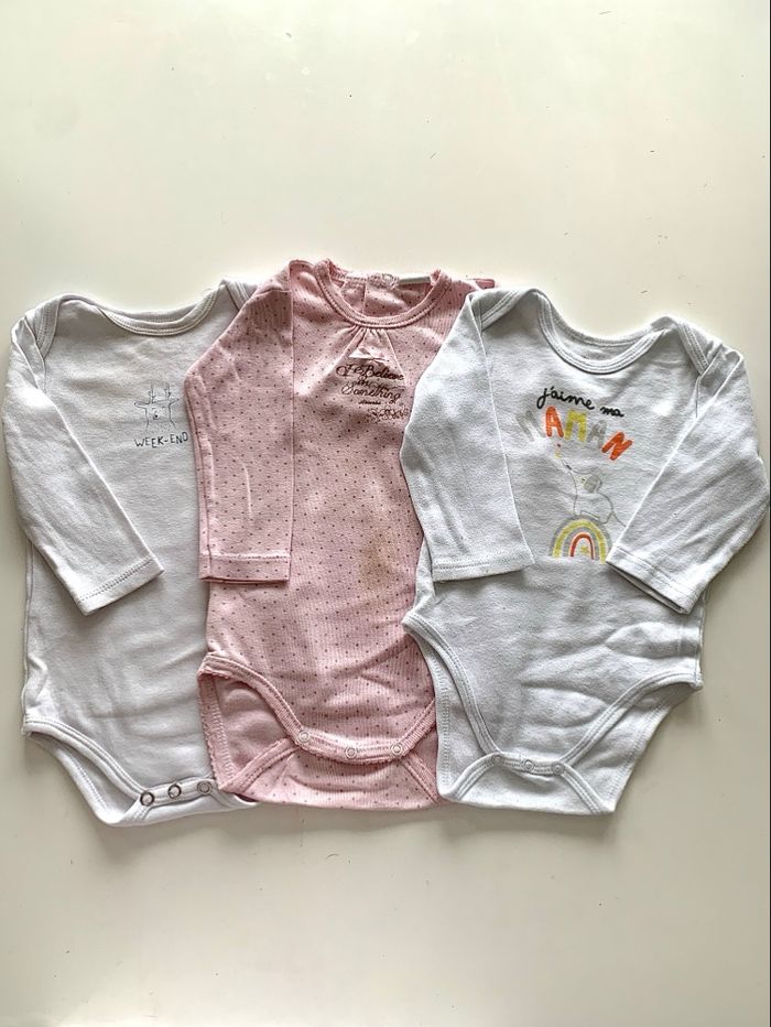 Le rose est de marque absorba et se ferme par pressions en haut du dos Les 2 autres de marque in extenso et mes petits cailloux 🌺 possible 1€ pièce (total minimum de 2€ avec un autre article) #fc93230bébé
