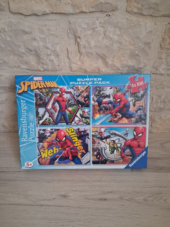 Lot de 4 puzzles "Ravenburger" Marvel Spider -man 100 pieces. A partir de 5 ans. 1ere main. Vendu complet.