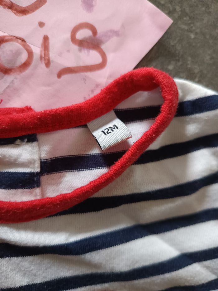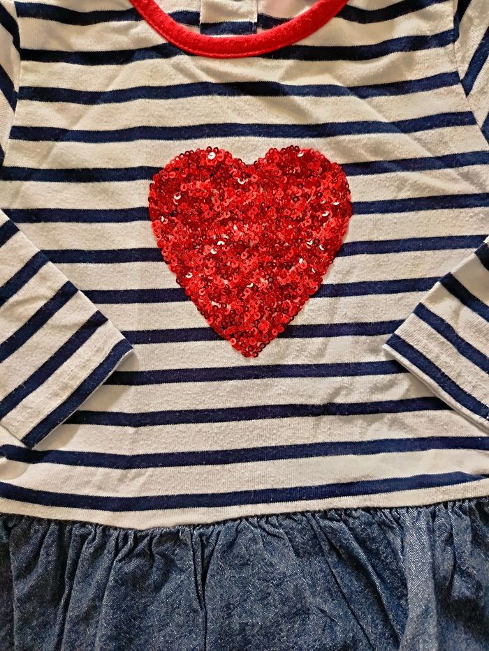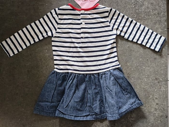 Robe bi matière : - haut marinière avec coeur en strass rouge - bas en jean NEUVE jamais portée ! Taille 12 mois