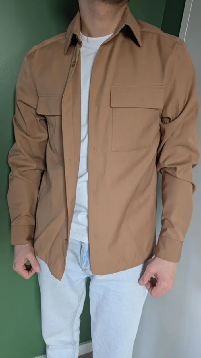Sur chemise, manches longues. Entièrement boutonnée. 2 poches plaquées poitrine. Marque: H&M. Taille: S. Coloris: Marron clair 65 % polyester 35 % viscose