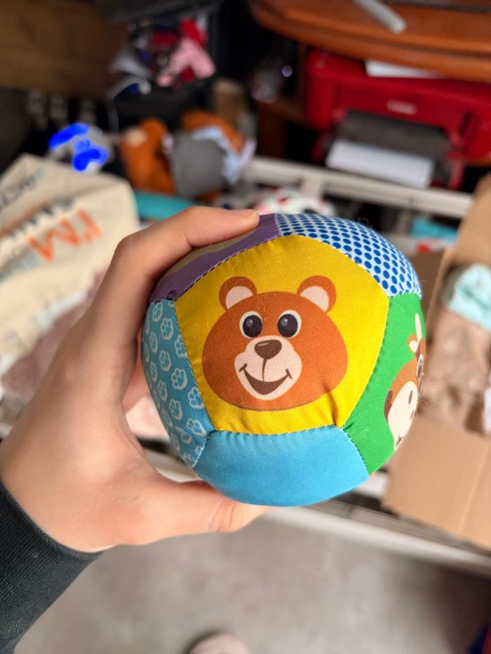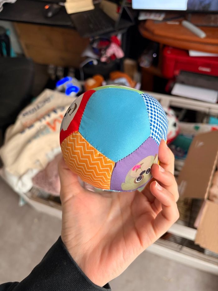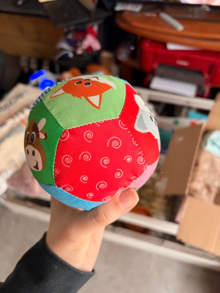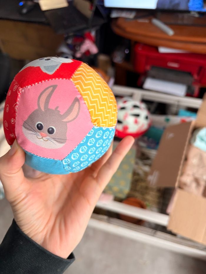 Jamais utilisé Petite balle multicolore qui as des dessins d’animaux et qui fait du bruit quand on la manipule.