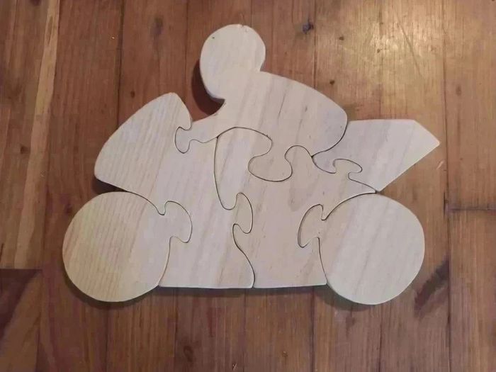 Puzzle moto jouet en bois Artisanal enfant Très bon état, utilisé 1 ou 2 fois pas plus, Quelques petits défauts du bois, ça travail, à été acheté comme ça! (voir photo) Peut être mis en déco dans la chambre, car tiens debout #mesptvtjeuxjouets #jeu #jouet #puzzle #jeubois #jeuenfant