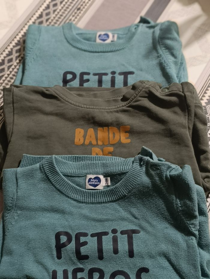 Pull et sweat garçon 24/36 mois lot de 3 dont 2 identiques de marques mots d'enfants