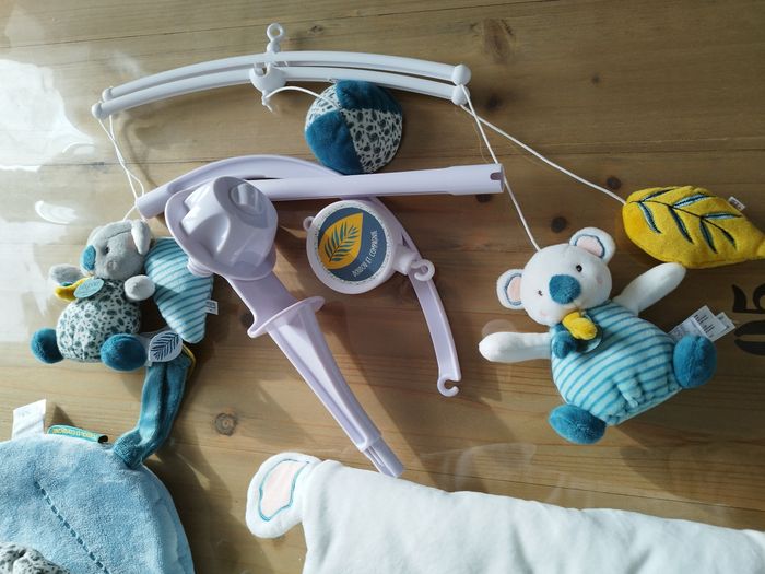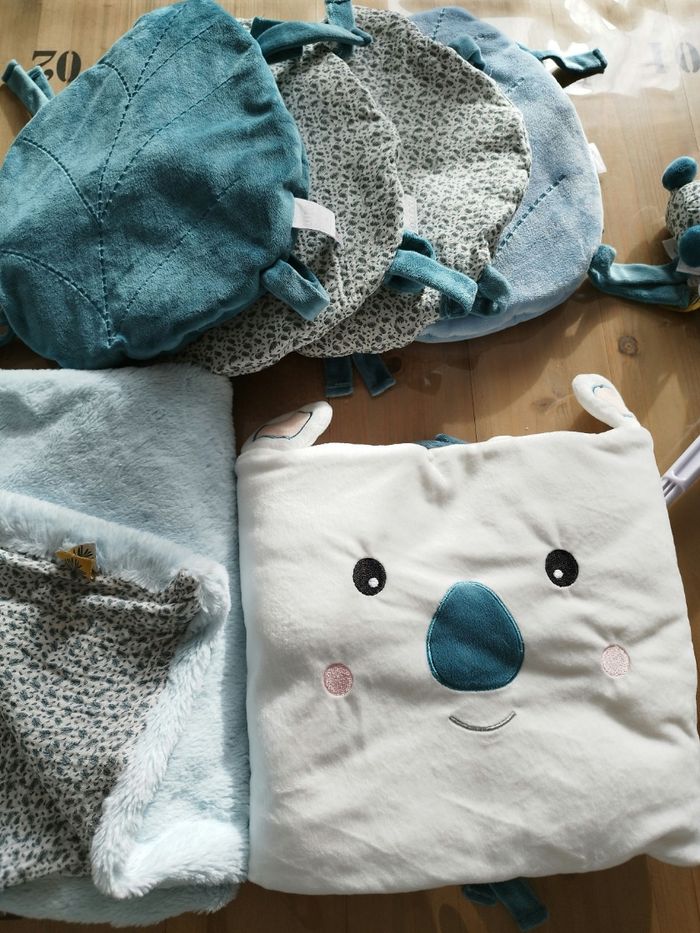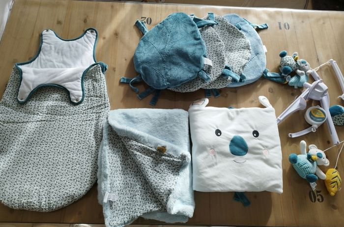 Ensemble collection chambre mixte Yoca le Koala de chez doudou et compagnie. -Tour de lit -Gigoteuse 0-6 mois -1 plaid -1 mobil Tout est neuf sans étiquettes. Juste lavé.