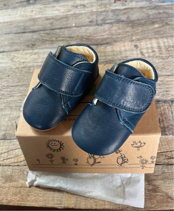 Chaussons en cuir bébé Marque : Froddo Couleur : Bleu marine Pointure : 18 État : Neufs dans emballage d’origine
