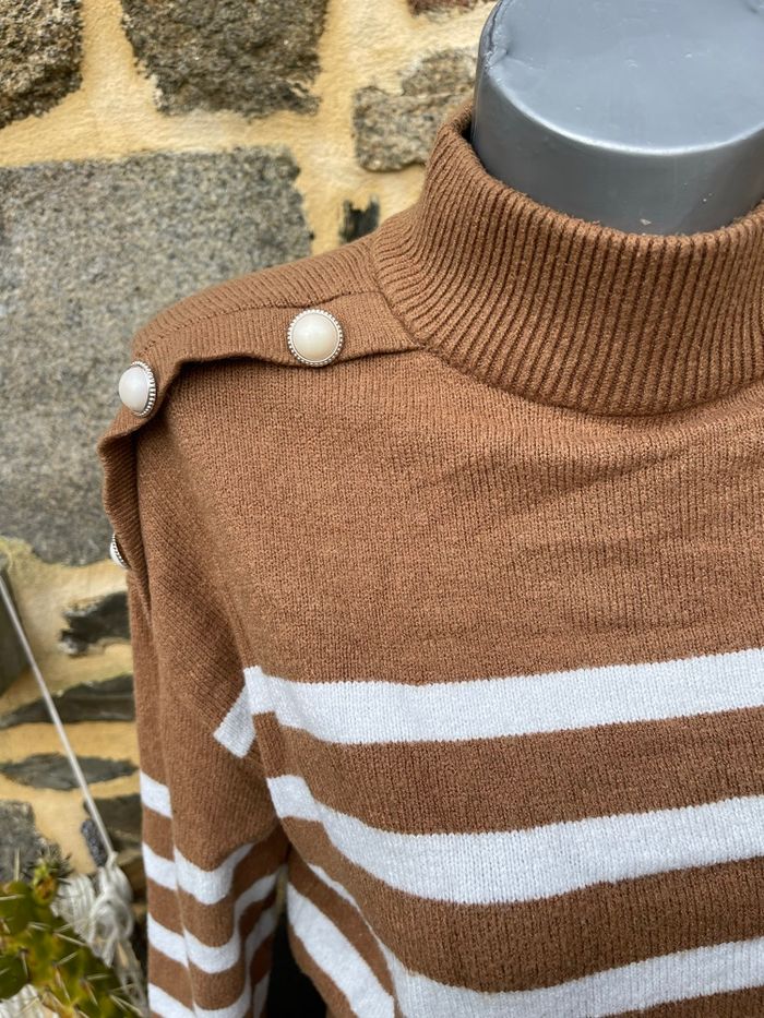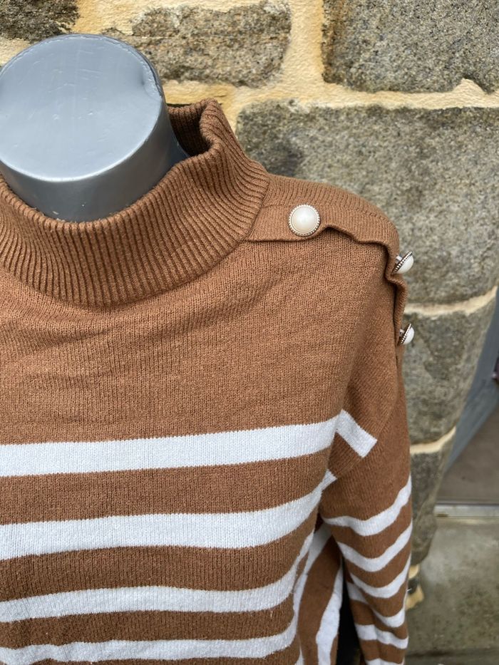 Pull en maille marron avec rayure blanche - Kiabi  - photo numéro 5