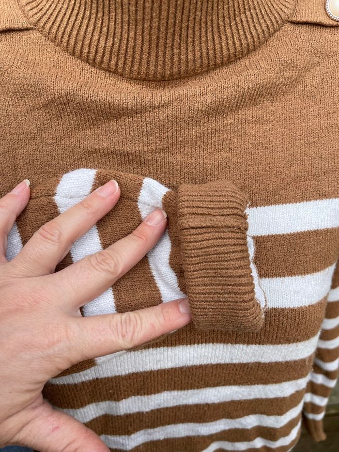 Pull en maille marron avec rayure blanche - Kiabi  - photo numéro 7