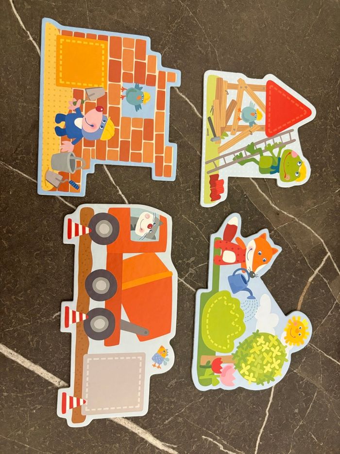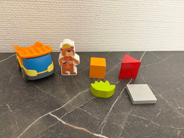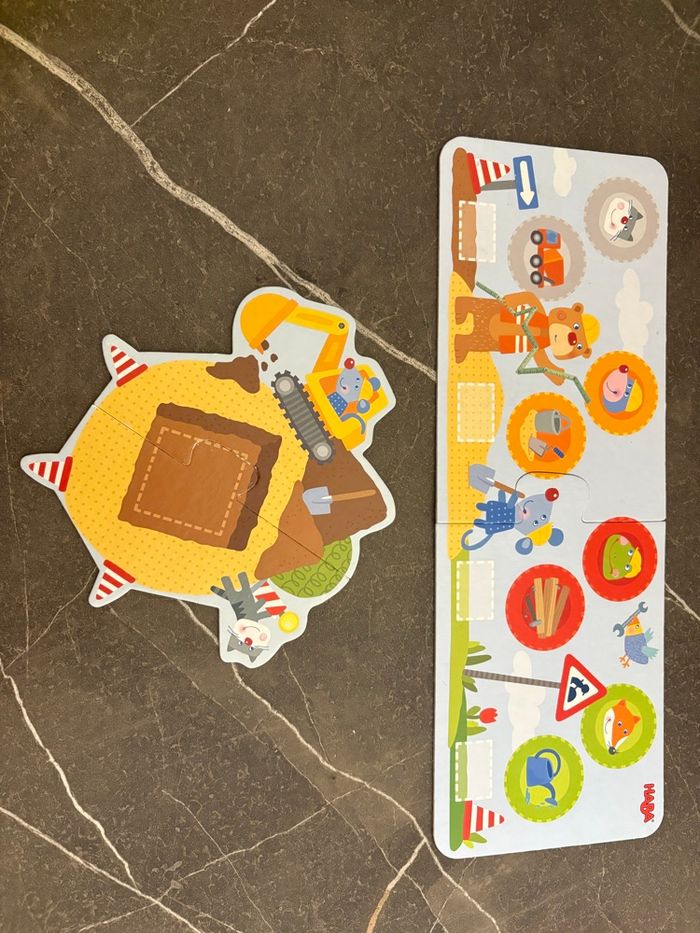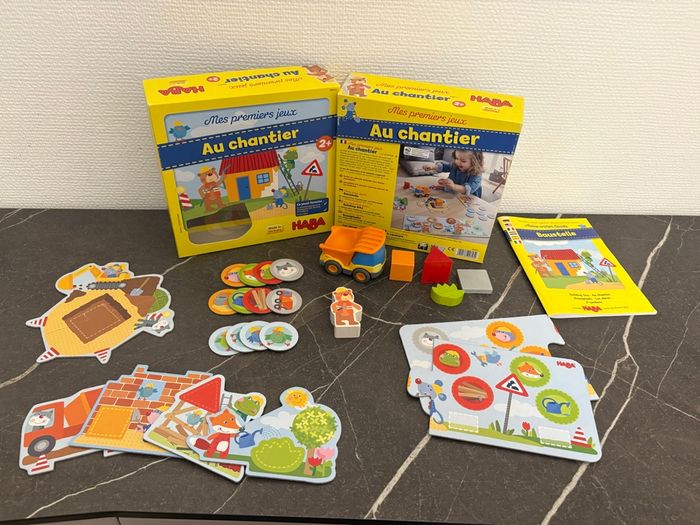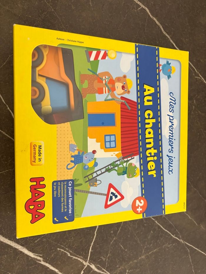 Mes premiers jeux Au chantier de la marque Haba Jeu complet en très bel état général, la boîte peut présenter de très légères marques Voir photos pour plus de détails