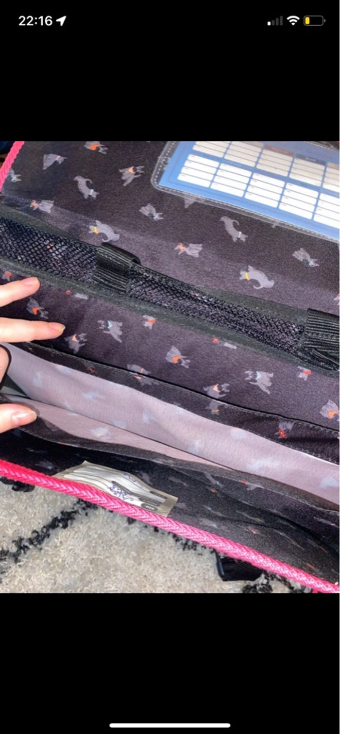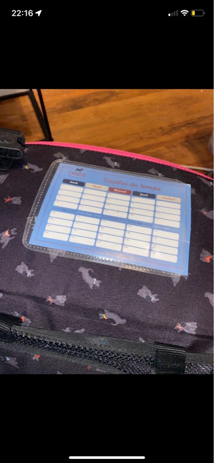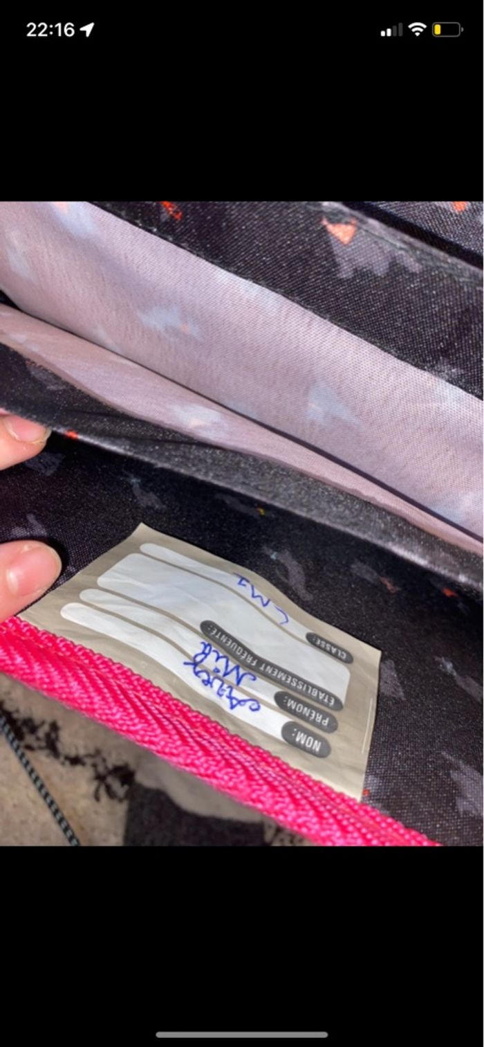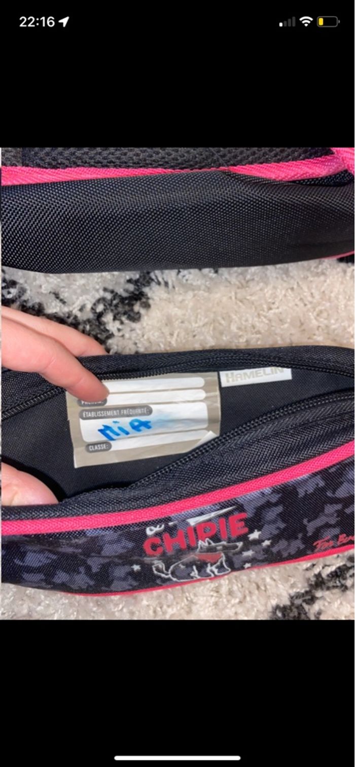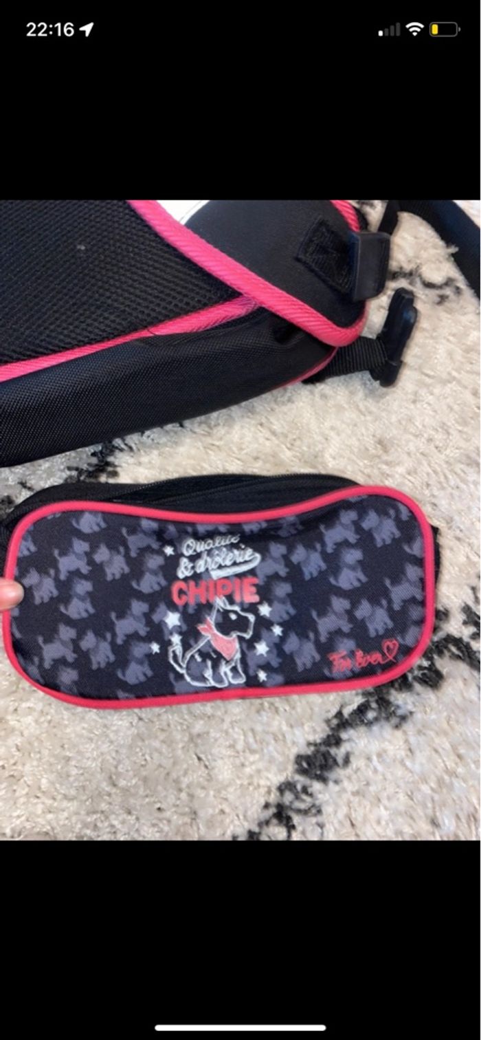 Le cartable et neuf !! La trousse à était utilisée 1 mois même pas pour des crayon de couleur Il y’a juste les prénom inscrit dessus