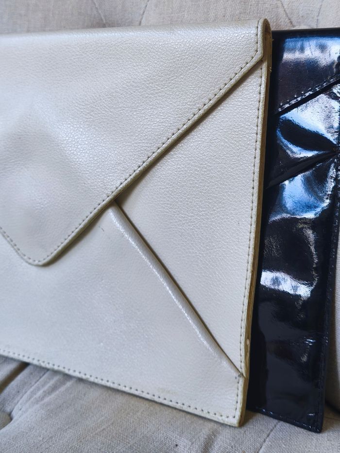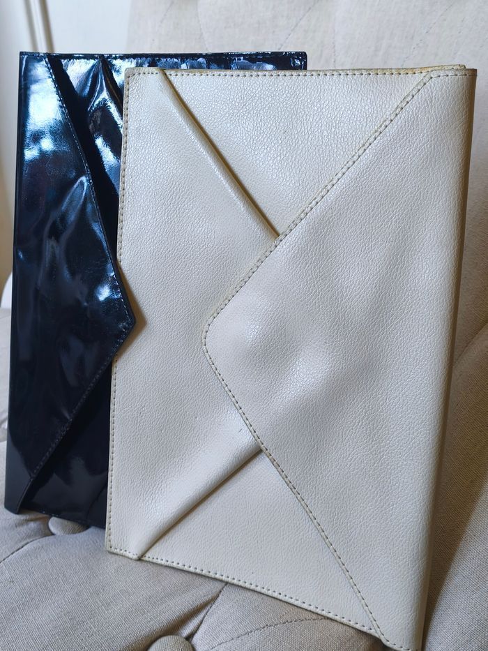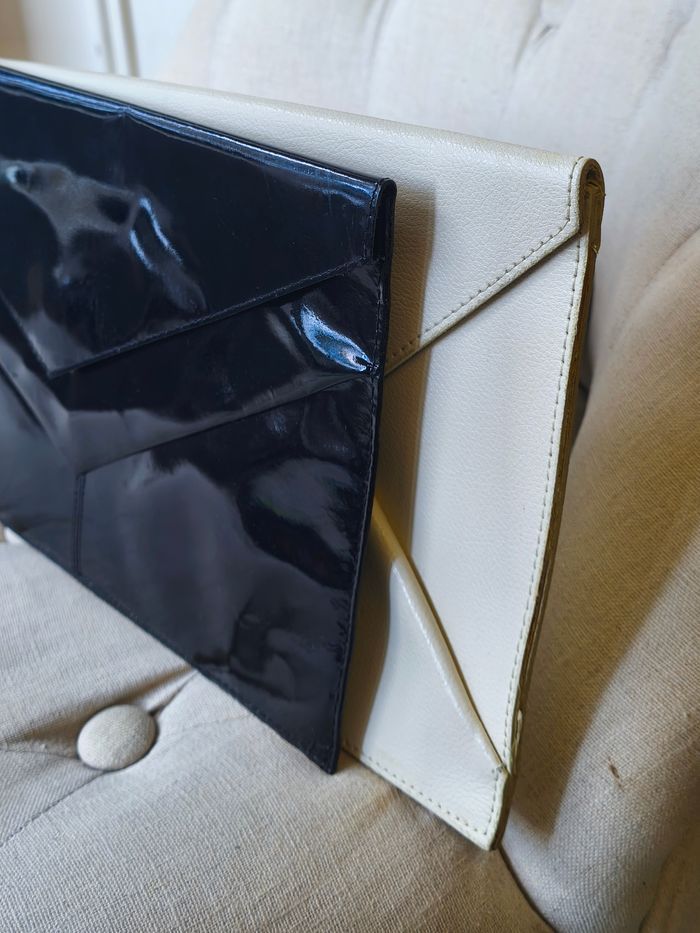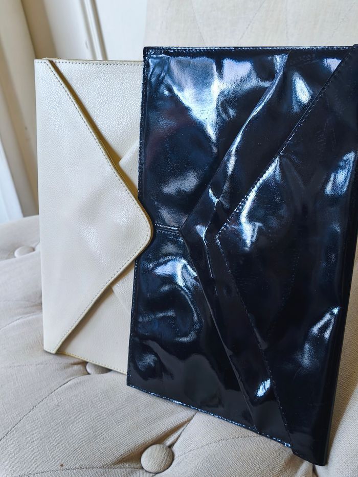 🤍🖤 Lot de 2 pochettes "enveloppe" en cuir véritable (cuir lisse & cuir verni) - La Bagagerie