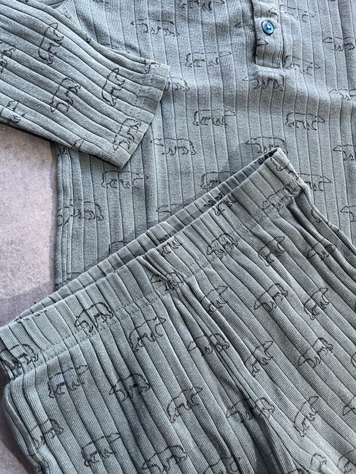 Pyjama côtelé vert avec des ours En bon état car bien porté Taille 4ans