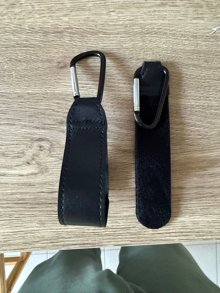 Lot de 2 crochets en cuir universel et pour toute par marque de poussette. Scratch pour attacher autour de la poussette et mousqueton pour les sacs Expédition le jour même si avant midi sinon le lendemain. Autre article de bébé dans mon dressing.