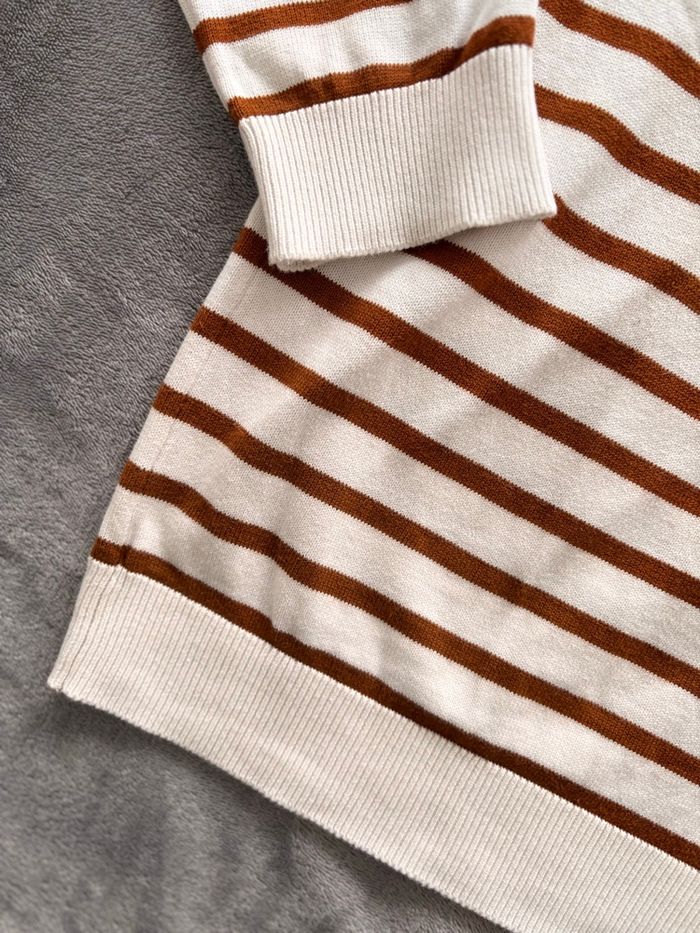 Pull Jules homme taille M – style marinière blanc & camel - photo numéro 4