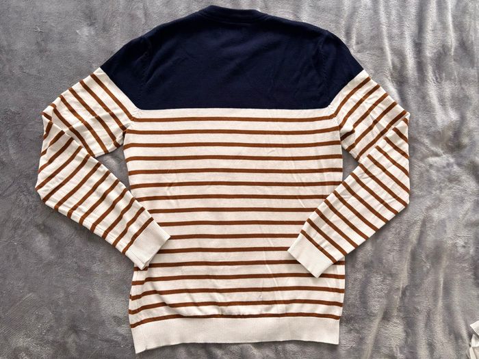 Pull Jules homme taille M – style marinière blanc & camel - photo numéro 5