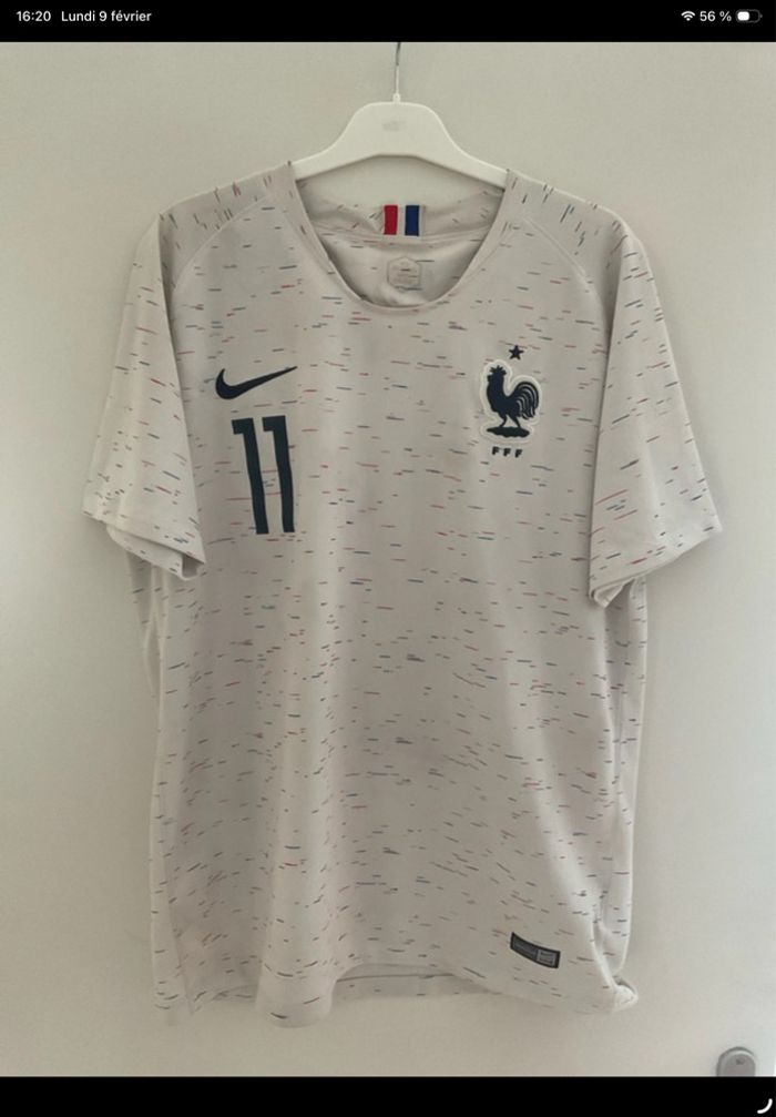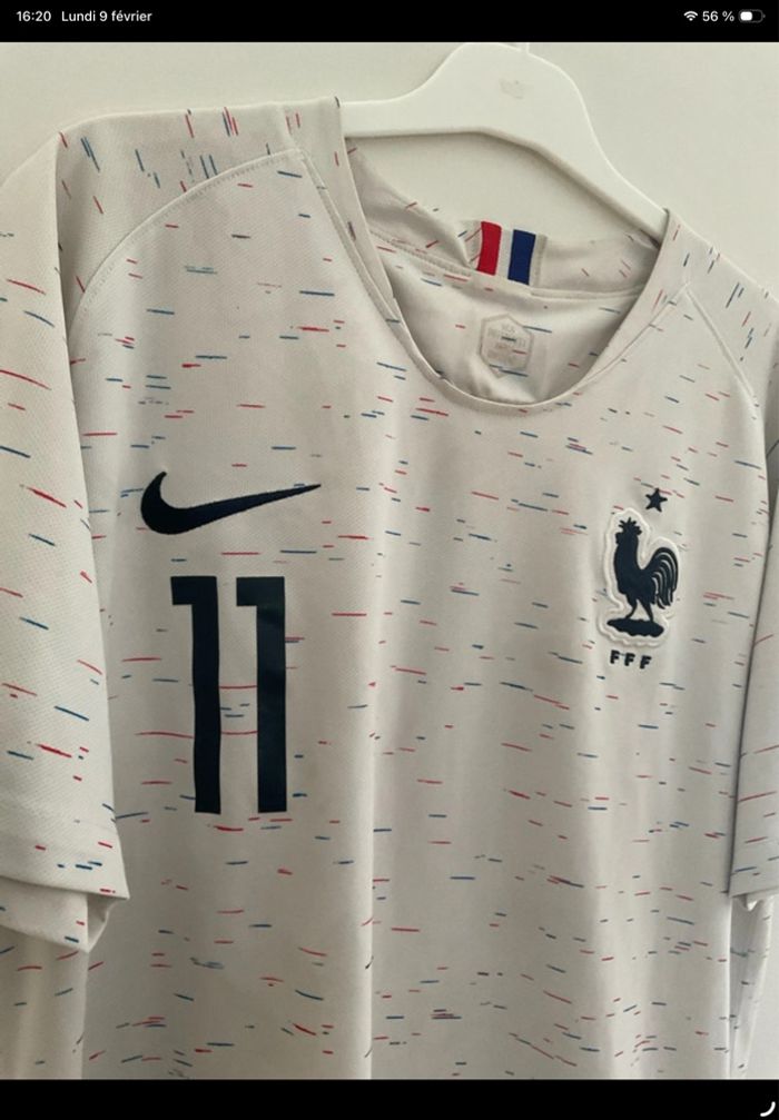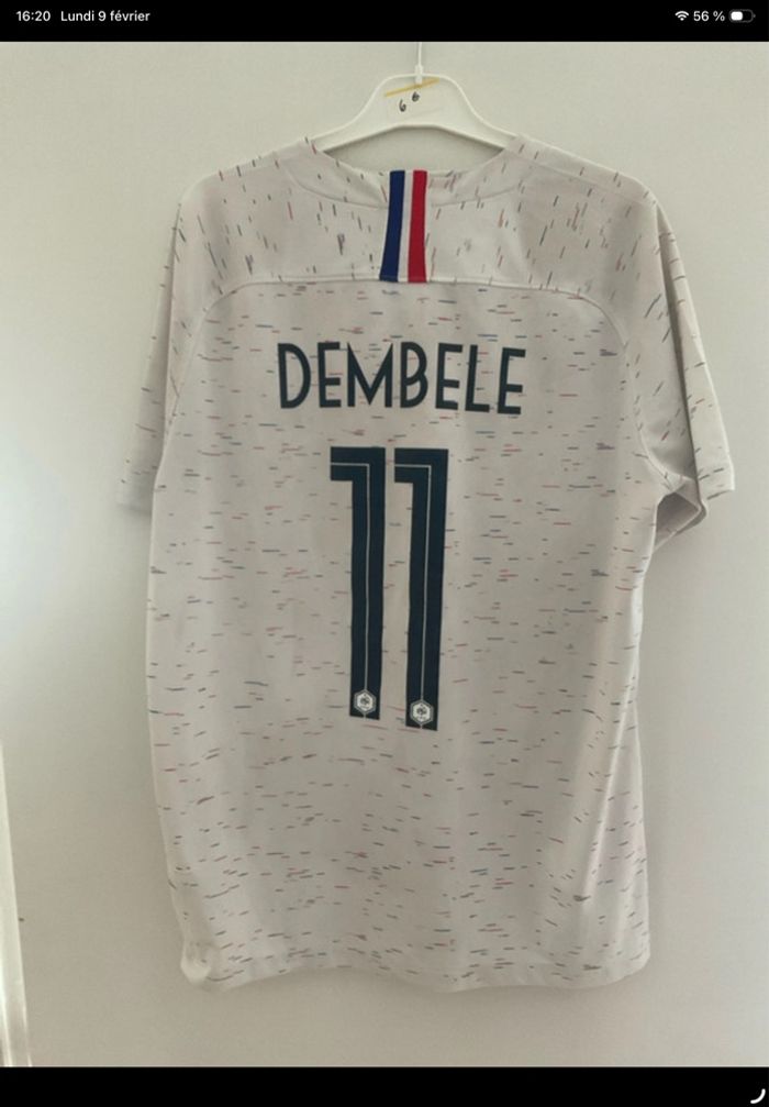 Maillot collector de football très rare vainqueur coupe du monde 2018 équipe de France avec ousmane dembelé super star du football et ballon d’or Équipementier Nike