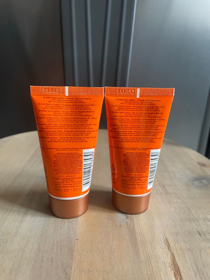 Crème après soleil Lancaster Gamme Golden Tan Maximizer Lait après soleil 50 ml x2 → 100ml Neufs