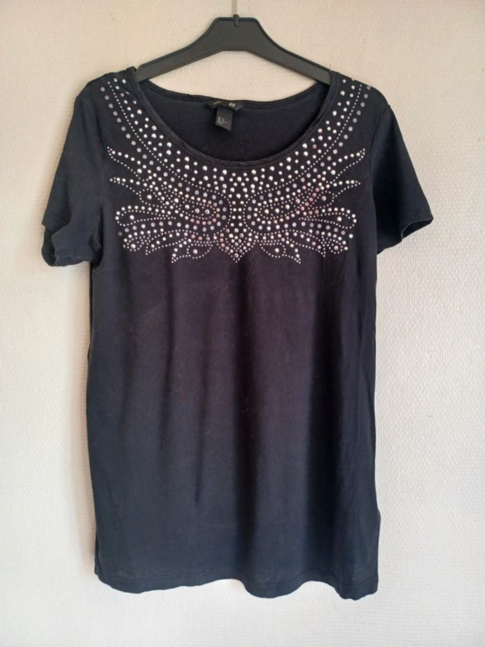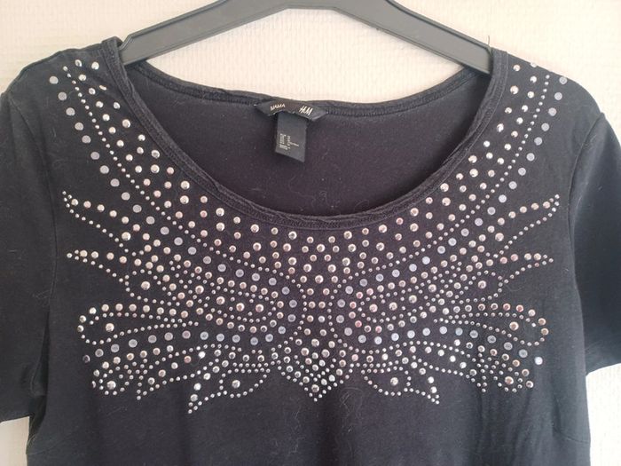 🖤T-shirt H&M🖤 Strass devant Peu porté Très bon état Longueur 70cm Largeur épaules 40cm Largeur aisselle à aisselle 50cm