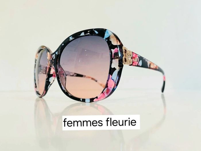 Lunette de soleil femme fleurie et dorée verres dégradés UV protection catégorie 2 - photo numéro 1