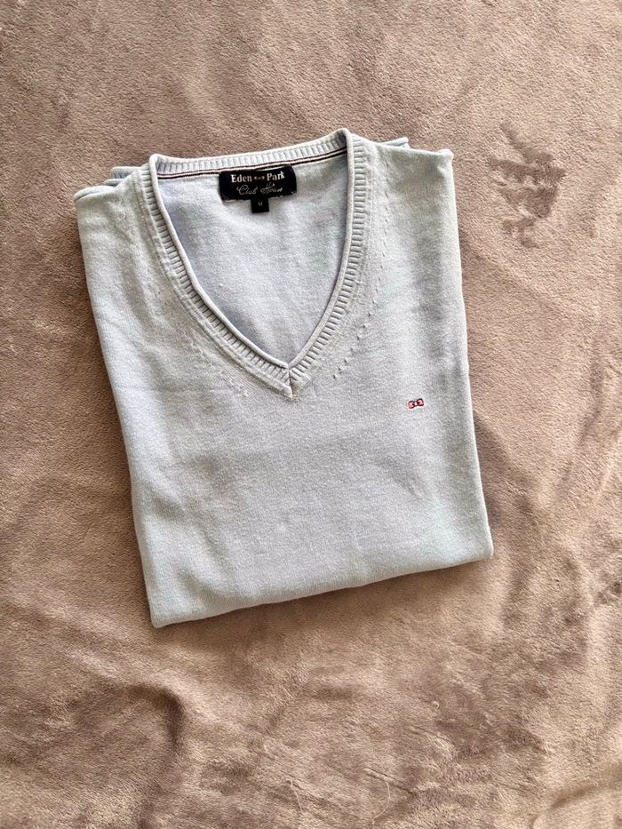 Pull Eden Park homme taille M bleu ciel – coudières brodées - photo numéro 1