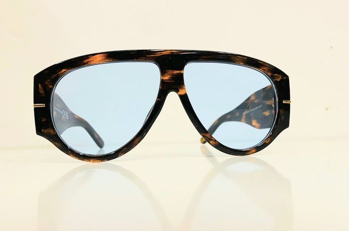 Lunette de soleil mixte marron léopard verres bleus uvprotection catégorie 1 taille large