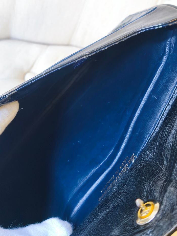 💙 Pochette vintage en cuir véritable embossé façon croco bleu - Les Sacs Fabienne - photo numéro 9