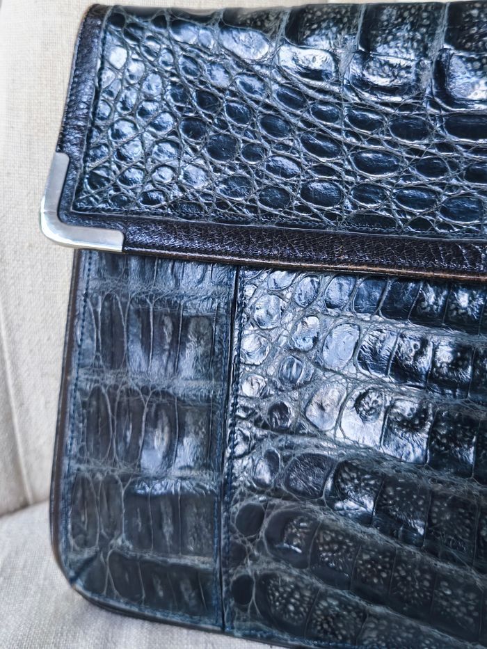 💙 Pochette vintage en cuir véritable embossé façon croco bleu - Les Sacs Fabienne - photo numéro 8