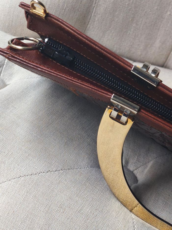 🤎Sac vintage en cuir véritable embossé façon croco – anse rigide métal doré - photo numéro 9