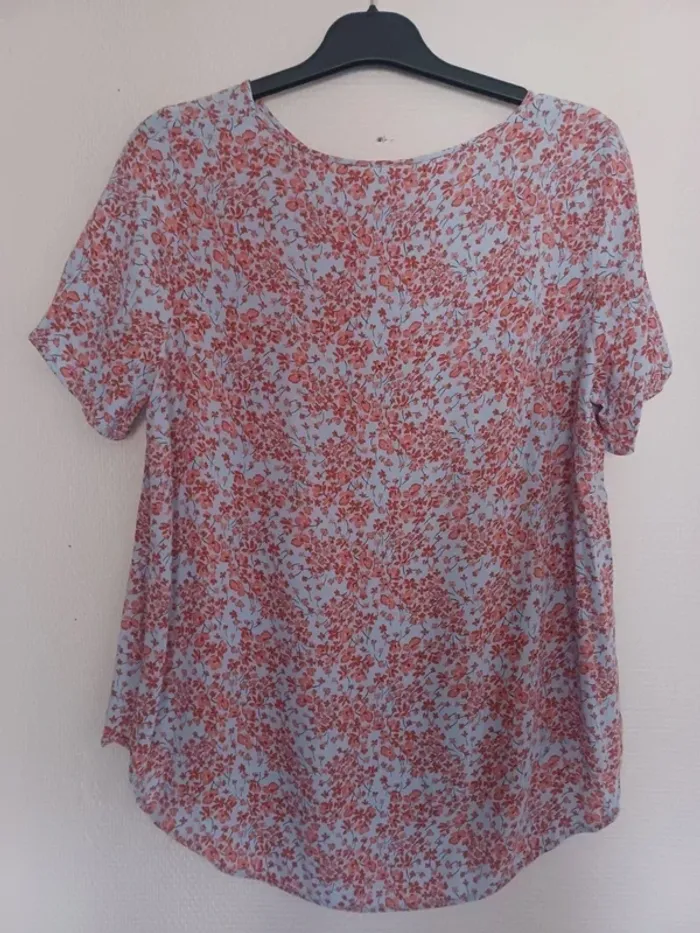 💗T-shirt manches courtes💗 Étiquette coupée Très bon état Matière souple et légère Largeur épaules 38cm Longueur devant 65cm Longueur derrière 67cm