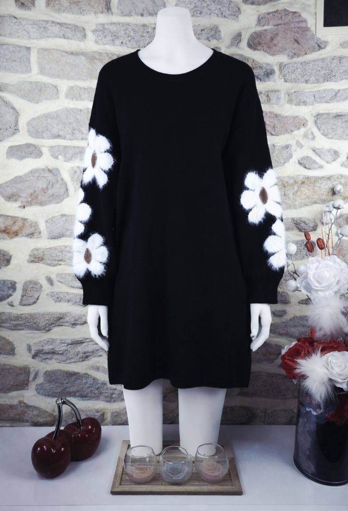Robe pull en tricot noir au motif marguerites sur les manches Femme taille 54 marque Asos 🌺  - photo numéro 1