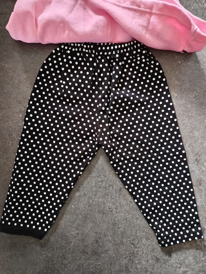 Ensemble 2 pièces : - 1 haut rose manches longues motifs coccinelles - 1 pantalon noir à pois blancs Taille 12 mois (plus d'étiquette) EXCELLENT état, porté qu'une fois !
