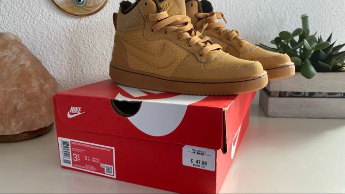 Baskets Nike Court Borough Mid Winter Couleur moutarde , fourrure marron NEUVES, jamais portées ! Payées 47,99€ au lieu de 69,99€ Je les vends 40€