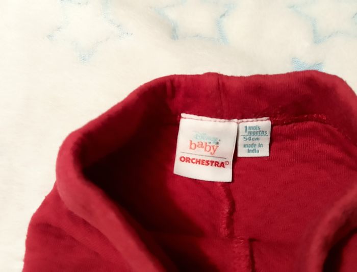 🎀 Adorable petit ensemble fille Disney Baby Orchestra, composé d’un pull blanc et d’un pantalon rouge. •Taille 1 mois / 54 cm. •Pull blanc Minnie •Légèrement évasé en bas •Motif Minnie un peu effacé (voir photos) •Pressions dans le dos pour un enfilage facile •Confortable et doux •Pantalon rouge •Très bon état •Petit nœud décoratif au niveau du genou √ Ensemble en bon état général 🤍 Prix: 4€