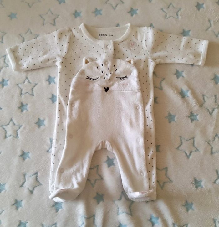 Pyjama bébé Gémo – 1 mois – Motif chat – Ouverture avant