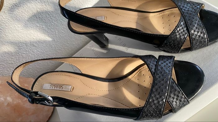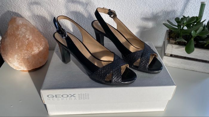 Sandales à talons Geox Respira T37 Très peu portées, 2 ou 3 fois. Agréables et respirantes pour l’été Achetées 130€ en boutique, je les retrouve à 148€ sur internet ! (Voir dernière photo)