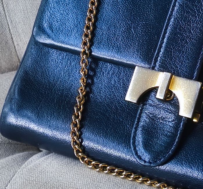 💙 Sac vintage chic en cuir bleu - chaîne maille dorée et fermoir graphique - photo numéro 1