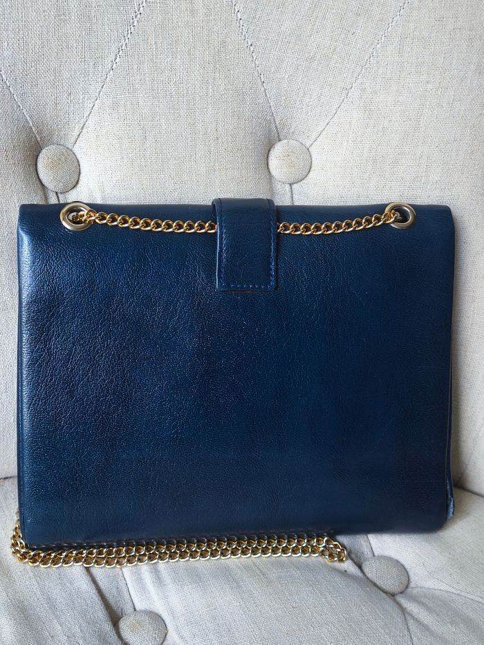 💙 Sac vintage haut de gamme en cuir bleu - chaîne maille dorée et fermoir graphique - photo numéro 3