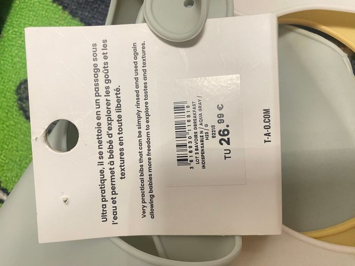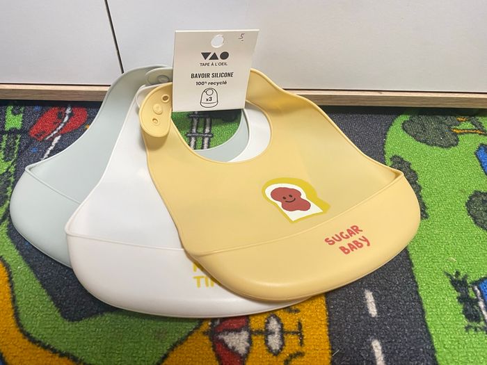 Lot de 3 Bavoirs en silicone de marque Tape à l’œil Produit neuf - acheter 26,00€ #jonathandu67130