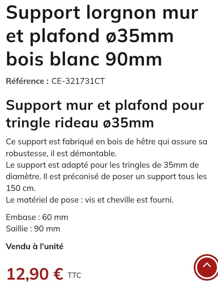 Support mur et plafond, idéal pour double rideau, dressing. Le lot de 2 à 6€ , le lot de 6 à 15€ #support