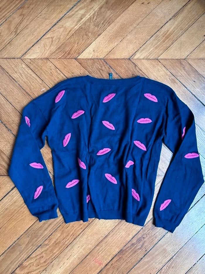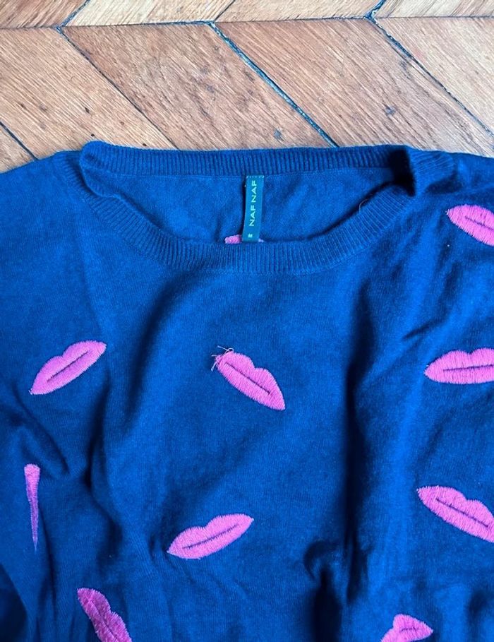 Magnifique pull Naf Naf bisous taille M Pull avec des bouches de partout Pull bleu marine avec bouche rose fushia Prix en forte baisse !! Très bon état, mis 1 fois mais 2 bouches ont des fils qui ressortent. Voir photo Laine, polyamide .. #vanessa2626 #nafnaf #vanessa2626femme #vanessa2626fille #vanessa2626haut #bisou #bisous #bisoux
