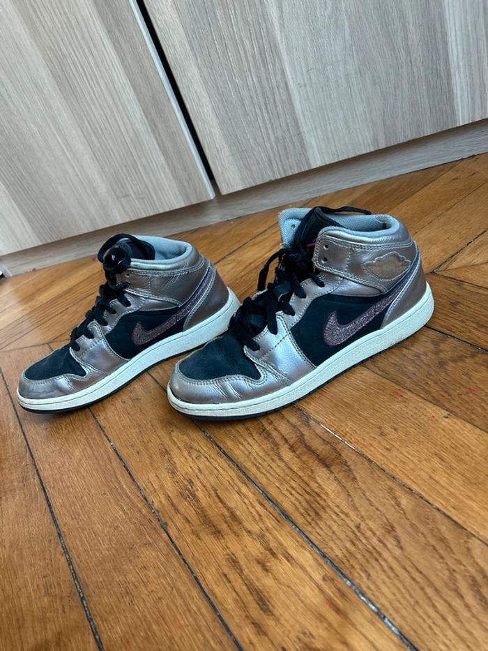 Basket Nike Air Jordan 1 Phat GS Silver Berry Taille : 38.5 Couleur difficile à définir argenté doré, rose fushia, noir Très bon état mais voir les photos pour voir l’état exacte. #vanessa2626 #basket #nike #jordan #phat #fille #femme #vanessa2626chaussures #vanessa2626basket #baskets #vanessa2626baskets