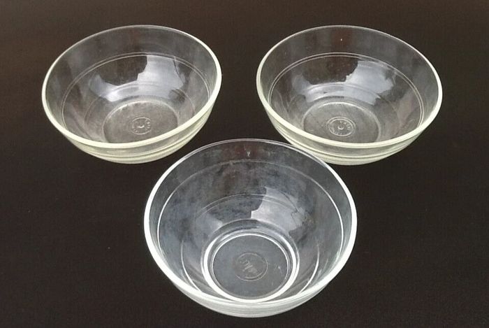 Années 1970 2 Coupelles verre Calvé Duralex / 1 Bol verre