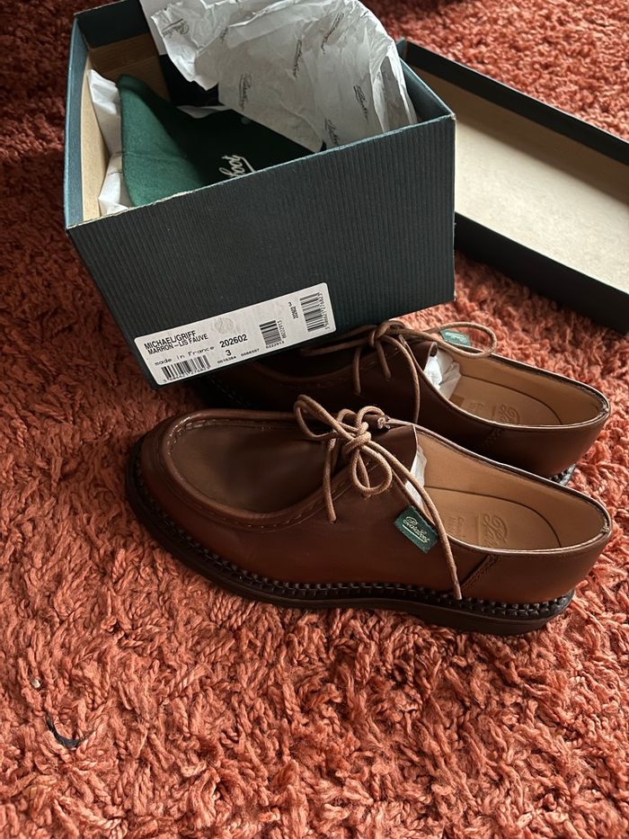 Paraboot Modele Michael Marron cuir lisse Neuves dans leurs boites Toujours bien préservées Jamais portées Taille 36 ( 3 ) 23 cm environ, j’ai mesuré à la main donc possible erreur de quelques mm ☺️ Prix négociable raisonnablement s’il vous plaît ! Envoi soigné 24 48h