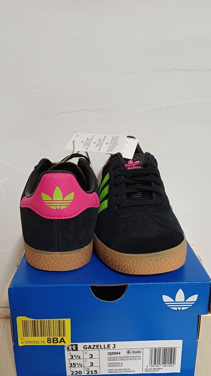 Adidas Gazelle Noir/ néon/rose Pointure : 35.5 (ok pour un petit 36) Noir Néon Rose sans aucun défaut État Irréprochable elles sont strictement NEUF Jamais portées, jamais essayées Vendues avec les étiquettes attachées et leur boîte d'origine intacte CE N'EST PAS DE LA CONTREFAÇON Possibilité de livrer MONS ET ALENTOURS Ou remise en mains propres INFORMATIONS EN MP #adidas #gazelle #adidasgazelle #gazelleindoor #sneakersaddict #streetwear #tendance #newshoess #courir #footlocker #Intersport