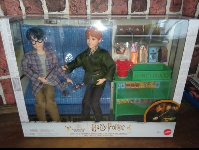 Coffret poupées Harry Potter et Ron Weasley à bord du Poudlard Express, boîte neuve scellée.