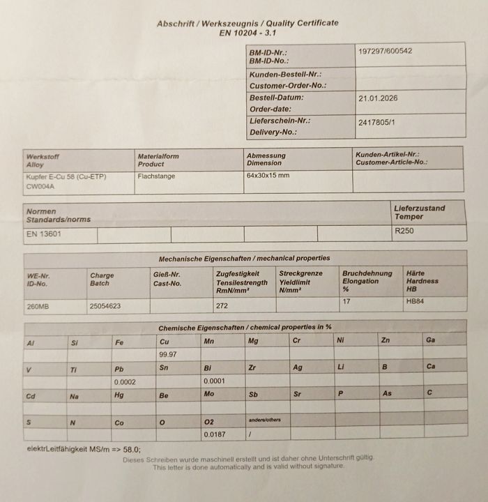 Produit 100% authentique 1 lingot en cuivre pur à 99.97% Poids 250g Dimensions 64x30x15 mm État neuf Certificat d'authenticité et de qualité DISPONIBLE ET EN STOCK