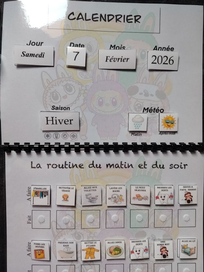 3 fiches plastifiées conçu pour aider votre enfant dans son quotidien de tout les jours vendu avec toute c'est étiquettes a scratch le calendrier va jusqu'en 2030